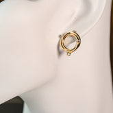Clous d'oreilles cercle en laiton plaqué or 18k et zirconium de 15,5 mm ( la paire )