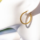 Créoles rondes torsadées en acier inoxydable doré de 30 mm ( la paire )