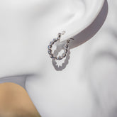 1 paire de créoles rondes torsadées en laiton plaqué platine de 20 x 17 x 3,5 mm, épaisseur de la tige : de 0,7 à 1,2 mm.