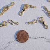 Fermoirs crochets main en laiton plaqué or 18k et zirconium de 34 mm ( à l'unité )