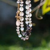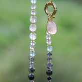 Collier noué " pur " en Iolite, Aigue-marine et Quartz rose à Diopside ✨