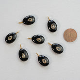 Les charms gouttes " Nidhih " en Onyx, zirconium et argent 925 plaqué or de 24 mm ( à l'unité )