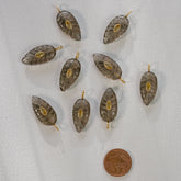 Charms " Nidhih " forme feuille en Quartz fumé sculptée, argent 925 plaqué or 18k 1 micron et un oxyde de zirconium ovale jaune, vendues à l'unité.