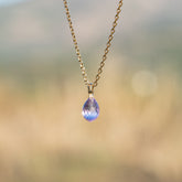 Petites gouttes facettes " Nidhih " en Améthyste lilas avec bélière laiton plaqué or 18k 1 micron et petit oxyde de zirconium transparent, vendues à l'unité.