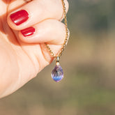 Les petits charms gouttes facettes " Nidhih " en Améthyste lilas, laiton plaqué or et zirconium de 18 mm ( à l'unité )