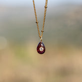 Pendentifs " Nidhih " forme gouttes lisses en Grenat almandin, argent 925 plaqué or 18k 1 micron et oxyde de zirconium rond transparent, vendus à l'unité.