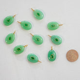 Pendentifs " Nidhih " forme gouttes lisses en Chrysoprase, argent 925 plaqué or 18k 1 micron et oxyde de zirconium ovale vert, vendus à l'unité.