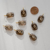 Les charms rectangles " Nidhih " en Quartz fumé, zirconium et argent 925 plaqué or de 24 mm ( à l'unité )