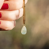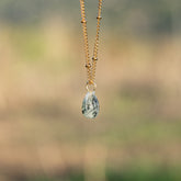 Petites gouttes facettes " Nidhih " en Préhnite verte à inclusions d'Épidote avec bélière argent 925 plaqué or 18k 1 micron, vendues à l'unité.