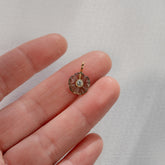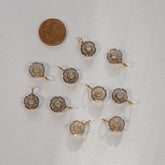 Petits pendentifs " Nidhih " forme fleur rondes sculptée en Quartz fumé ( assez clair ), argent 925 plaqué or 18k 1 micron et oxyde de zirconium rond facettes transparent, vendus à l'unité.