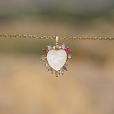 Breloques coeur en nacre, laiton plaqué or 18k et zirconium colorés de 22 mm ( à l'unité )