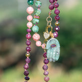 Kit collier nouĂ© " love" đŸ©· en Rubis, Rhodochrosite et Rubis dans Fuchite, Ă  vous de crĂ©er ! ✹