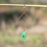 Charms " Nidhih " forme feuille en Chrysoprase sculptée, argent 925 plaqué or 18k 1 micron et un oxyde de zirconium ovale vert, vendues à l'unité.
