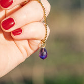 Petites gouttes facettes " Nidhih " en Améthyste avec bélière argent 925 plaqué or 18k 1 micron, vendues à l'unité.