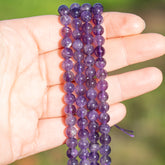 Perles rondes lisses en Améthyste de 6,5 mm ( 1/2 rang de env 30 perles )