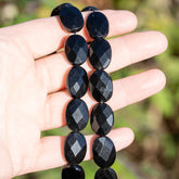 Perles ovales facettes en Obsidienne noire de env 18 mm ( à l'unité )