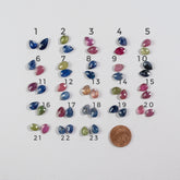 Lot 2 perles gouttes aplaties facettes de Saphir multicolore de différentes tailles et couleurs au choix, choisissez votre lot avec le numéro.