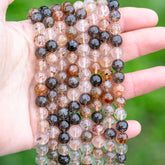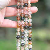 Perles rondes lisses de Quartz hématoide à inclusions de 8 mm ( 1/2 rang de env 24 perles )