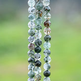 Perles rondes lisses de Quartz à inclusions vert de 8,5 mm ( 1/2 rang de env 23 perles )