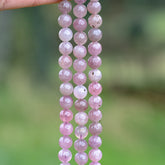 Perles rondes lisses de Quartz rose foncé de 8 mm ( 1/2 rang de env 23/24 perles )