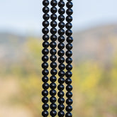 Perles rondes lisses de Spinelle noire de 6,5 mm ( 1/2 rang de env 30 perles )