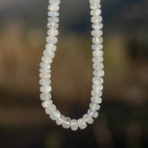 Fils de env 35/36 cm de perles rondelles facettes de labradorite blanche de taille comprises entre 7 et 8 mm de large pour env de 3 à 6 mm d'épaisseur, trou de 0,5 mm.