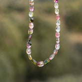 Fil de 43 cm de perles ovales lisses de Tourmaline multicolore " qualité wouah " 🌈 de 5/10 mm ( fil 4 )