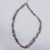 Fil de perles ovales aplaties lisses de Tourmaline multicolore, trou de env 0,4 mm.