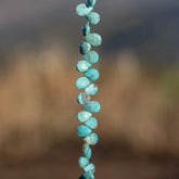 Trop jolies ces gouttes ! Belle qualité, Turquoise naturelle avec sa sublime couleur caractéristique et en prime des inclusions brillantes de Pyrite !