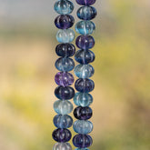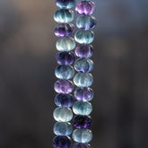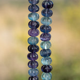 Perles rondelles sculptées " citrouilles " de Fluorite multicolore ( origine Mongolie ) de env 11,5/12 x 8,5/9 mm, trou de env 1 mm, vendues à l'unité.