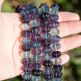 Perles rondelles sculptées " citrouilles " de Fluorite de env 12 x 8,5 mm ( à l'unité )