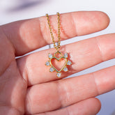 Breloques forme coeur évidée en laiton plaqué or 16k et oxyde de zirconium transparents de 20,5 x 17 x 2,5 mm, trou de 5 mm, anneau de 5 mm, vendues à l'unité.
