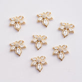 Breloques feuilles ou fleurs en laiton plaqué or 14k 1 micron et oxyde de zirconium transparent de 16,5 x 17,5 x 4 mm, trou de 1,2 mm.