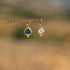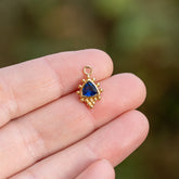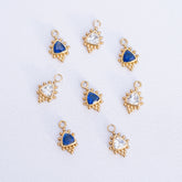 Petites breloques triangle avec petites boules en acier inoxydable 304 doré et strass soit transparent ou bleu nuit au choix de 15,5 x 9,5 x 3,5 mm, anneau ouvert de 2,5 mm.