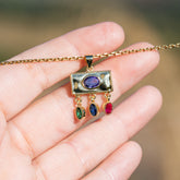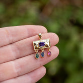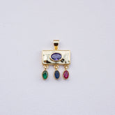 Sublimes breloques rectangulaire/oeil en laiton plaqué or 18k 1 micron et oxyde de zirconium violet, rose fuchsia, bleu nuit et vert Émeraude de 22 x 18 x 3 mm, boucle de jonction de 4 x 3,5 mm.