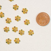 Coupelles fleurs en laiton plaqué or 18k et zirconium coloré de 8 mm ( lot de 2 )