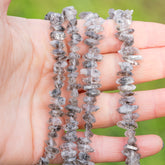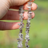 1/2 rang de env 20 cm de perles de cristal brut de Herkimer de environ 7/12 mm de long et de env 3 à 5 mm d'épaisseur, percées au centre, trou de env 0,7 mm.