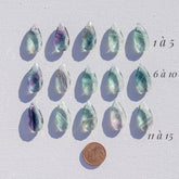 Si délicats avec de si jolies couleurs ! Vous pouvez ajouter ces bélières ou bien en fabriquer une avec un fil métallique ou enfin les monter avec un anneau de jonction un assez fins ( attention de ne pas forcer, la Fluorite est une pierre assez fragile ).