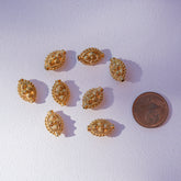Perles ovales travaillées en acier inoxydable plaqué or de 14 x 10 x 7 mm ( à l'unité )