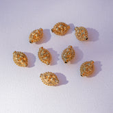 Grosses perles ovales travaillées et texturées en acier inoxydable 304 plaqué or 18k de 14 x 10 x 7 mm, trou de 1,5 mm, vendue à l'unité.