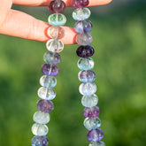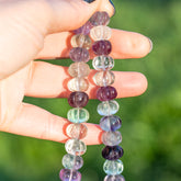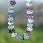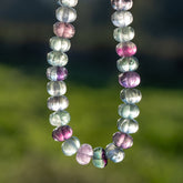Pierres fines naturelles, non traitées, translucides, sublime dégradé de couleurs pastels et plus soutenues, du vert au violet, avec des touches de rose et de transparent.