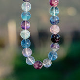 Juste WOUAH ! Avec ce diamètre, on voit tellement la qualité et les magnifiques couleurs de cette Fluorite ! J'ai rarement vu une telle beauté avec la Fluorite, je coupe la rang en deux, mélange variable de couleurs mais vous aurez : du vert, bleu, violet, rose et certaines perles multicolores, je suis loooooove !! ♡