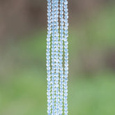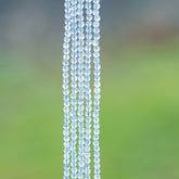 Rang de env 39 cm de long et de env 128 perles rondes facettes en Aigue-marine de 3,3 mm, trou de env 0,7 mm.