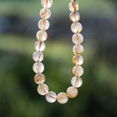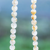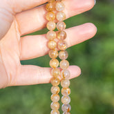 Perles rondes lisses de Quartz Rutile doré de 8,7 mm ( 1/4 de rang de env 11 perles )