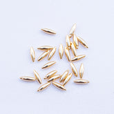 Breloques pampilles forme ovale ou grain de riz en laiton plaqué or 18k 1 micron de 10 x 3 mm, trou de 0,9 mm, vendues à l'unité.