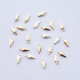 Petites breloques pampilles forme goutte ou pointe de flèche en laiton plaqué or 24k 1 micron de 10,5 x 4,5 x 2 mm, trou de 1 mm, vendues à l'unité.